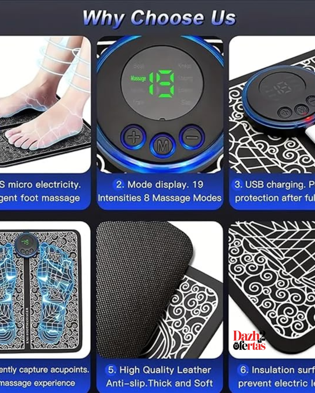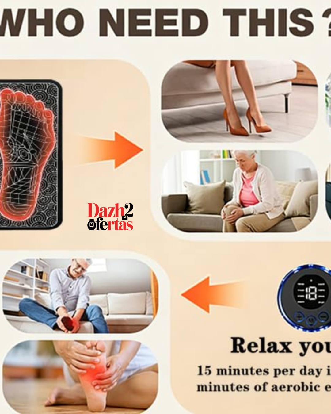 Relaja, estimula y descansa tus pies desde casa con la Almohadilla EMS Eléctrica para Pies, como si recibieras un masaje profesional… pero sin citas ni gastos excesivos.